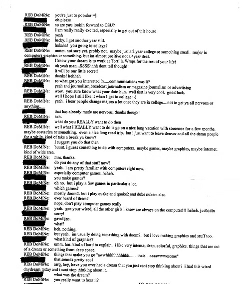 Her and Eric began chatting on AOL, obviously we only have very little of their chats published.