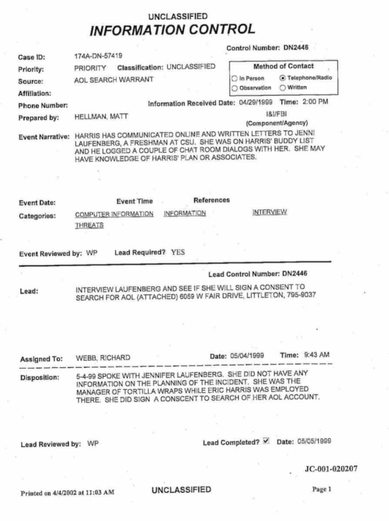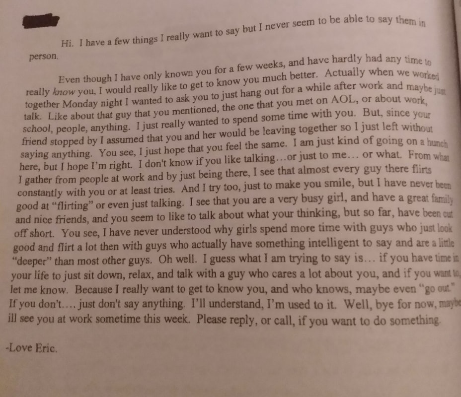 Eric’s love letter to his co-worker and manager at Tortilla wraps in the summer of 1998. Jennifer Laufenberg was one year older than Harris and getting ready to attend CSU.