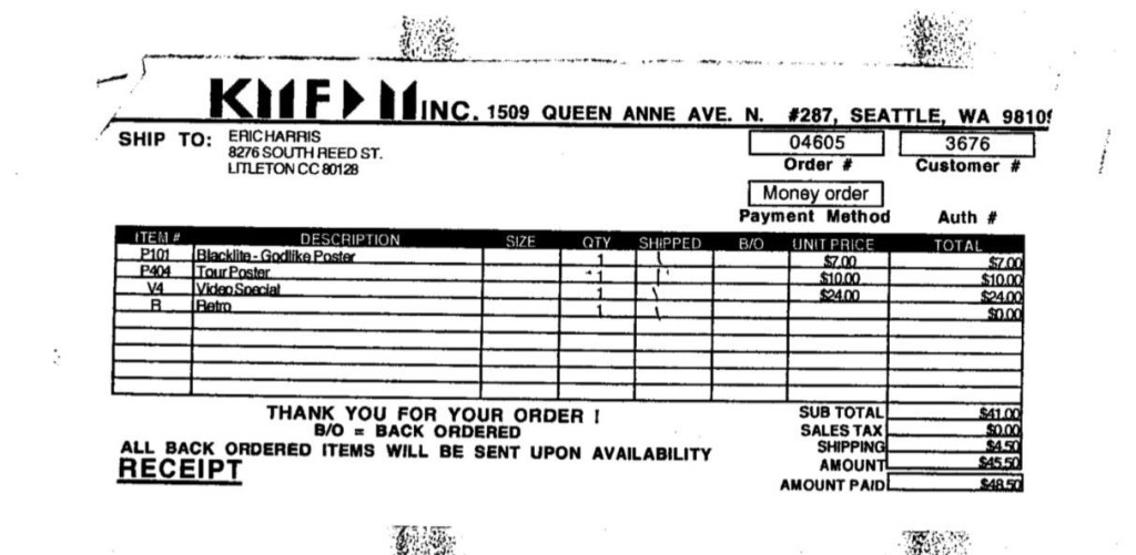 We don’t know what poster it is for certain, but we have a scan of one of his receipts in the 11k where he ordered two different KMFDM posters: