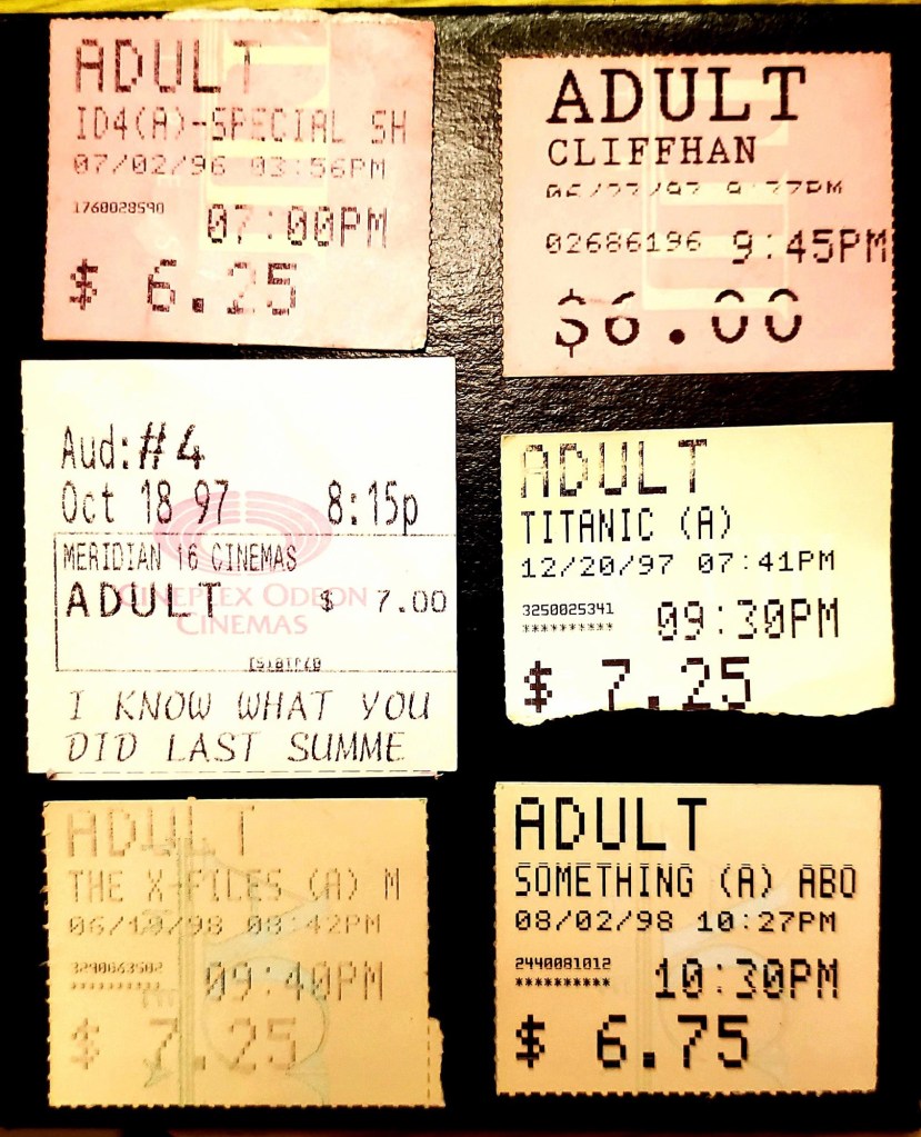 Example of random movie stubs from the 90’s. This is NOT Eric’s or anything related to him either. Again. Just to give a visual.