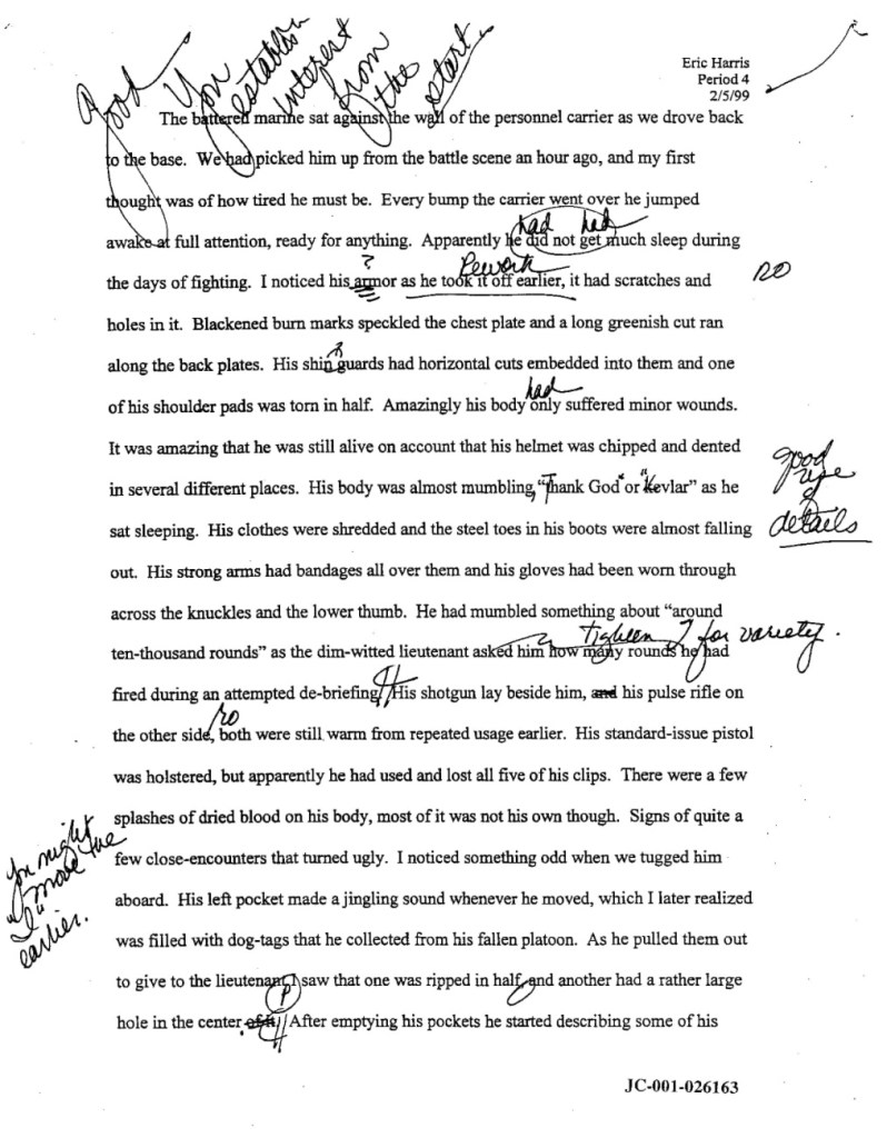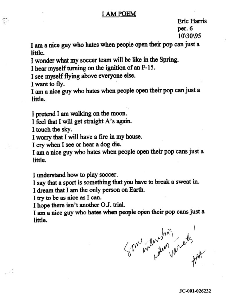 Eric first mentions the air-force in this writingIn January 1998 Eric and Dylan breaks into a van