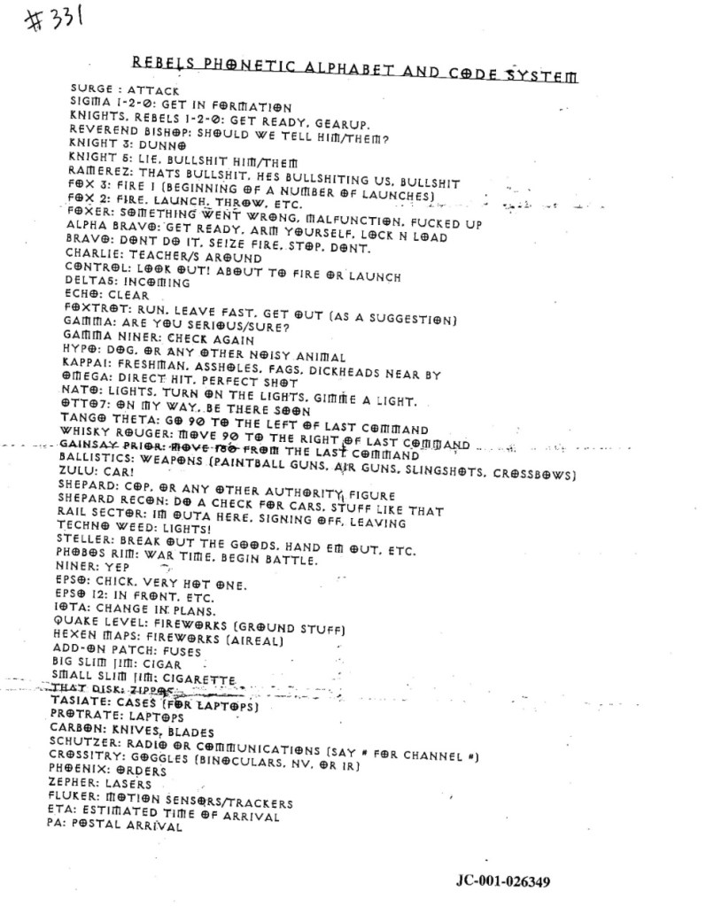 Beyond his school assignments, Eric also created a personal ‘Rebels Phonetic Alphabet and Code System.’ Like his writing exercises, it reflects his military inspired mindset commands, formations, and callouts structure his own imagined operations, showing how consistently he gravitated toward the Marine identity.