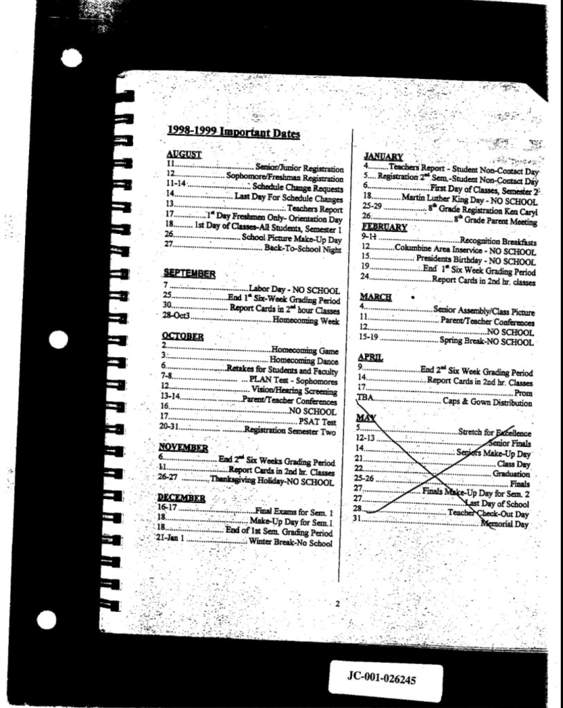 Eric first mentions a possible date in late March / early April on the Basement Tapes. At that point, he says he doesn’t know whether to do it before or after prom. Columbine’s senior prom was April 17, 1999, which places the planning for the attack to be sometime in mid April but, crucially, shows that no specific day had yet been fixed.